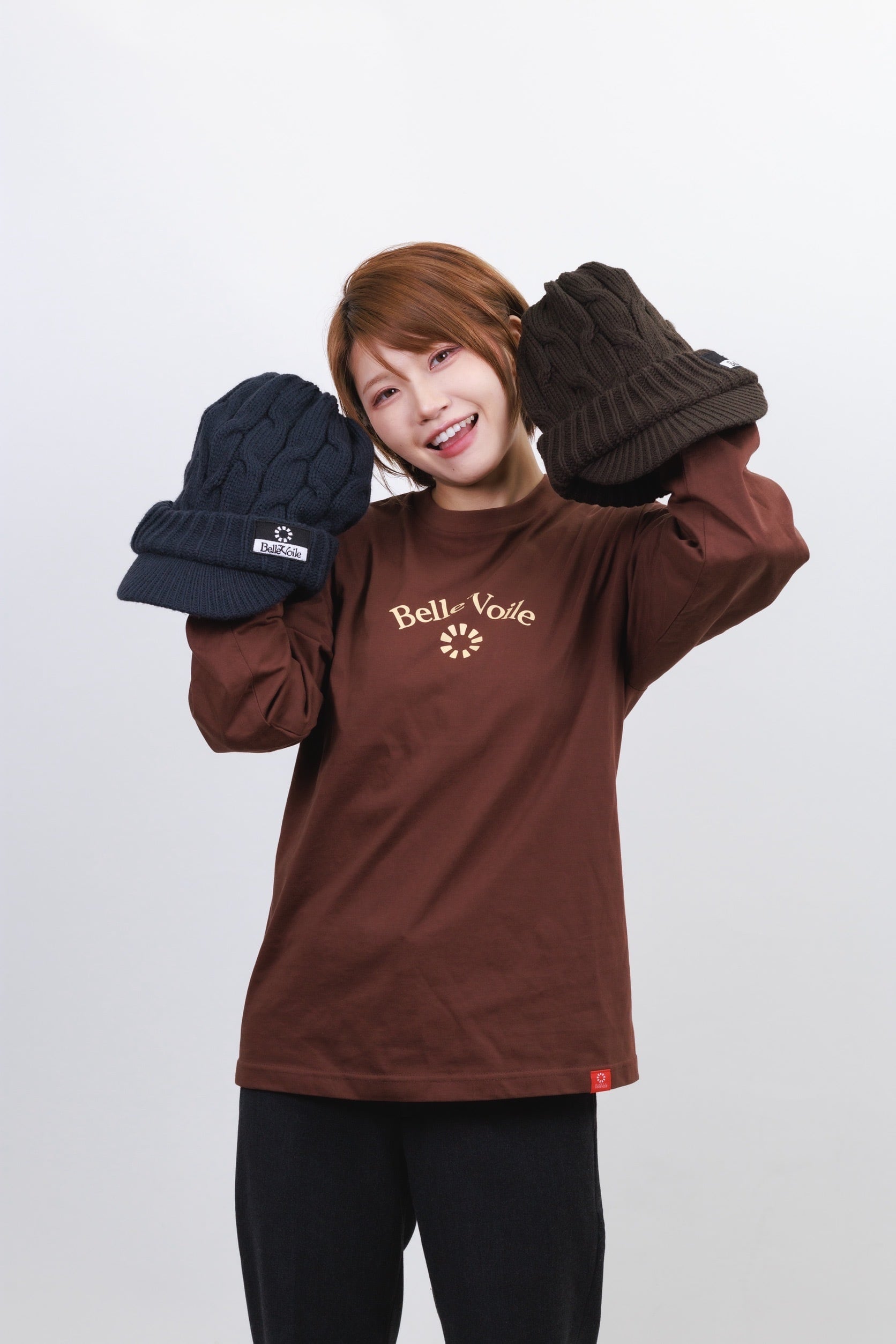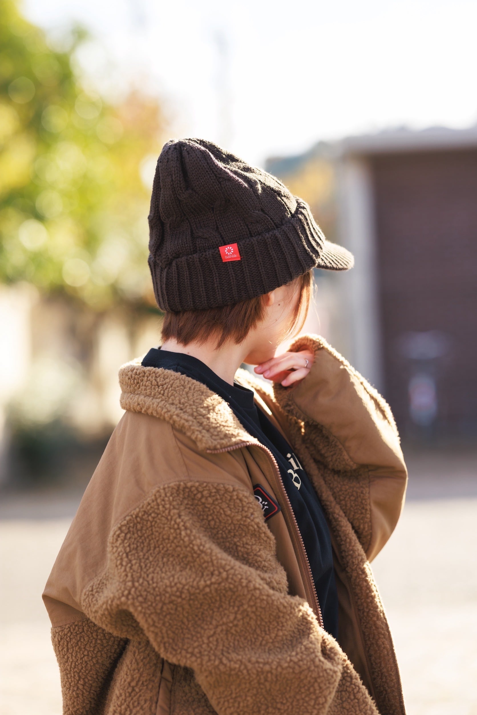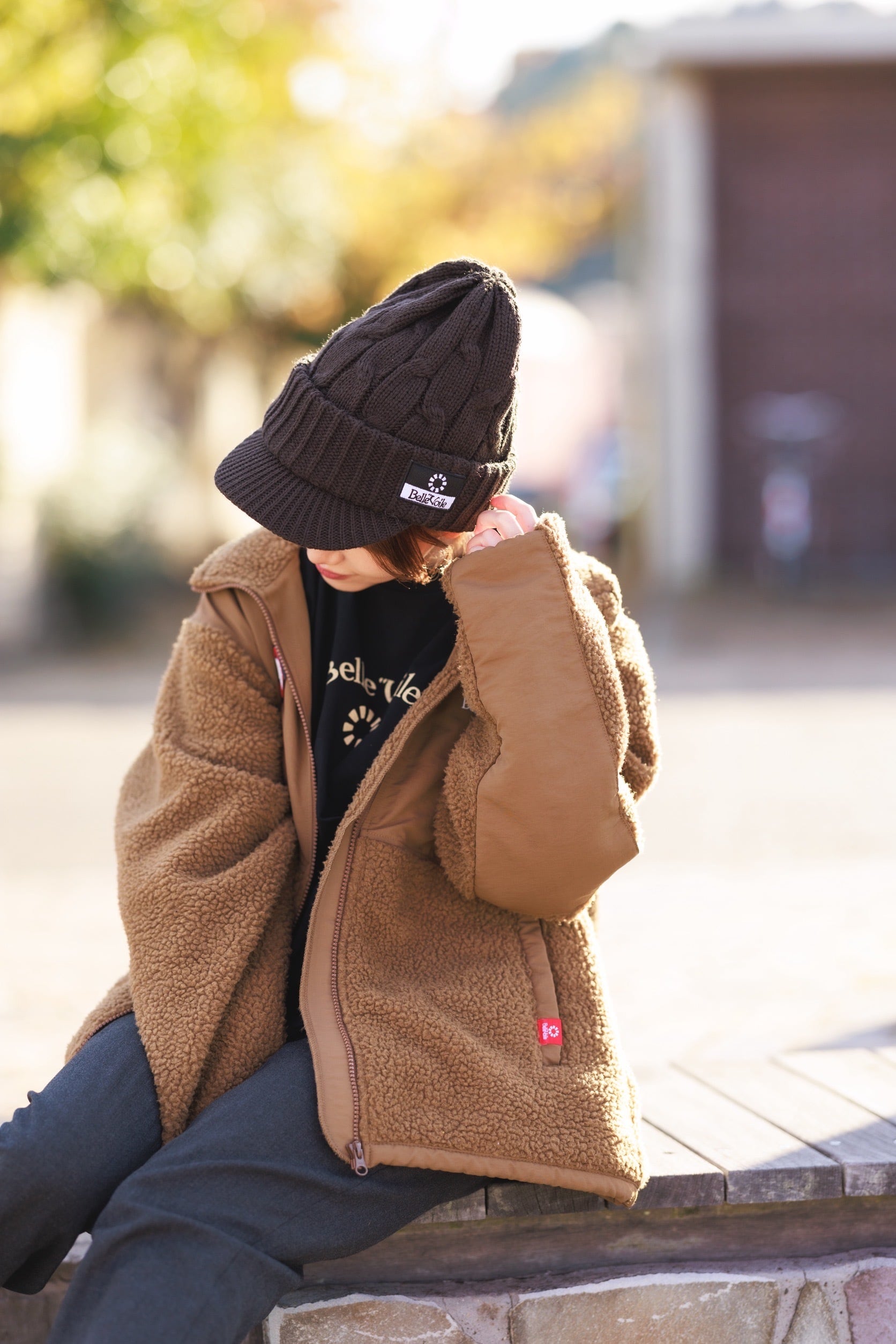 以前大好評だったツバ付きのニットキャップが、この冬再登場!ブラック、ホワイト、ブラウンの3色からお選びいただけます。