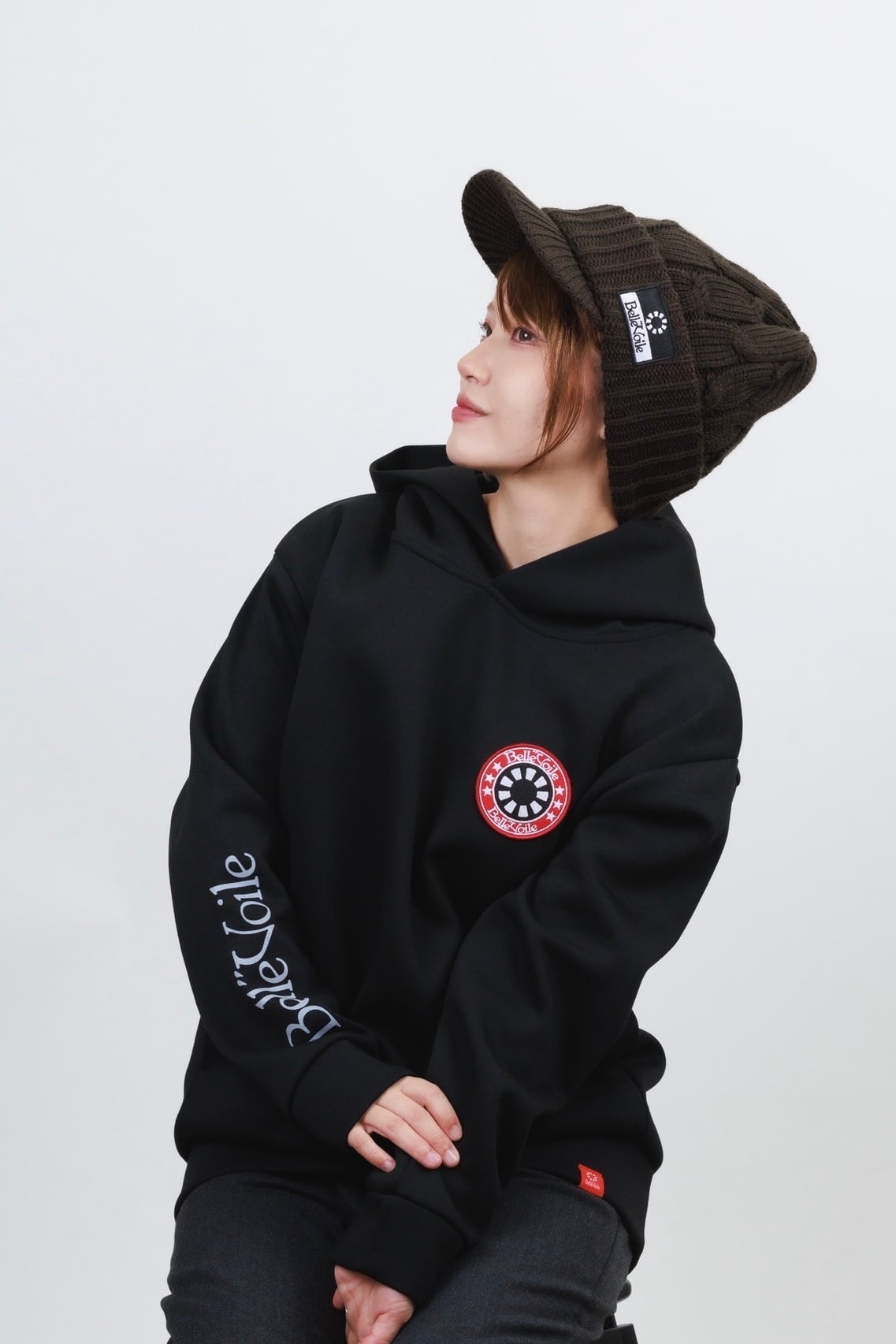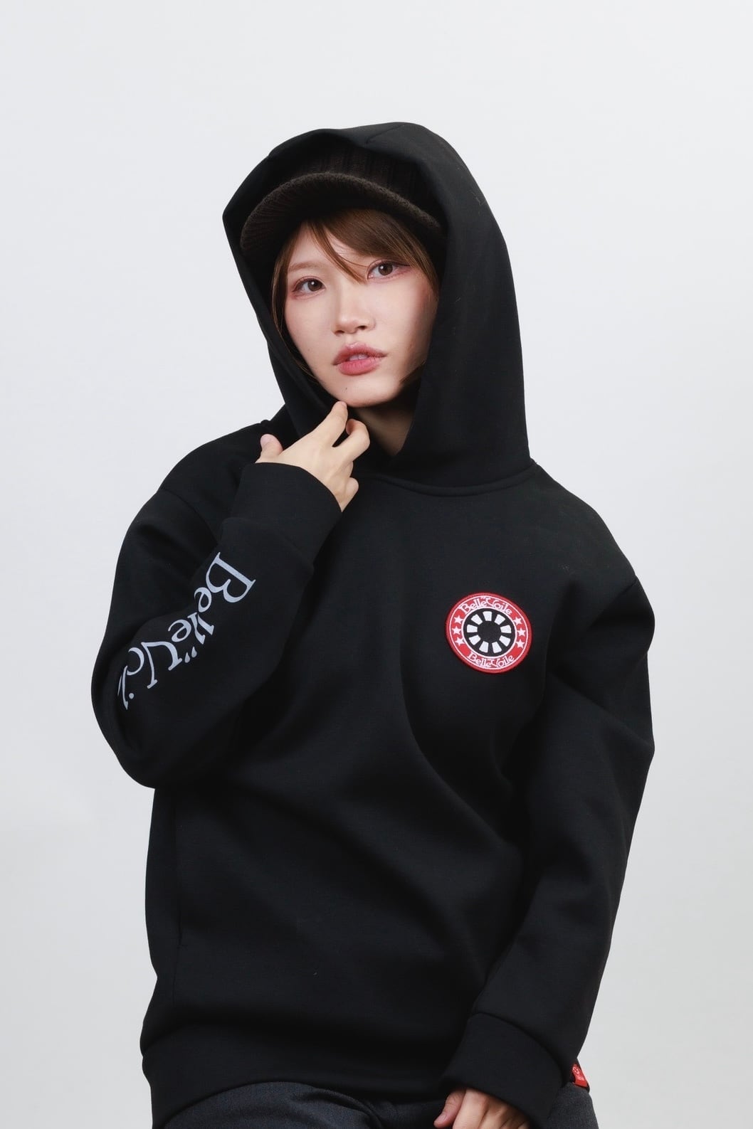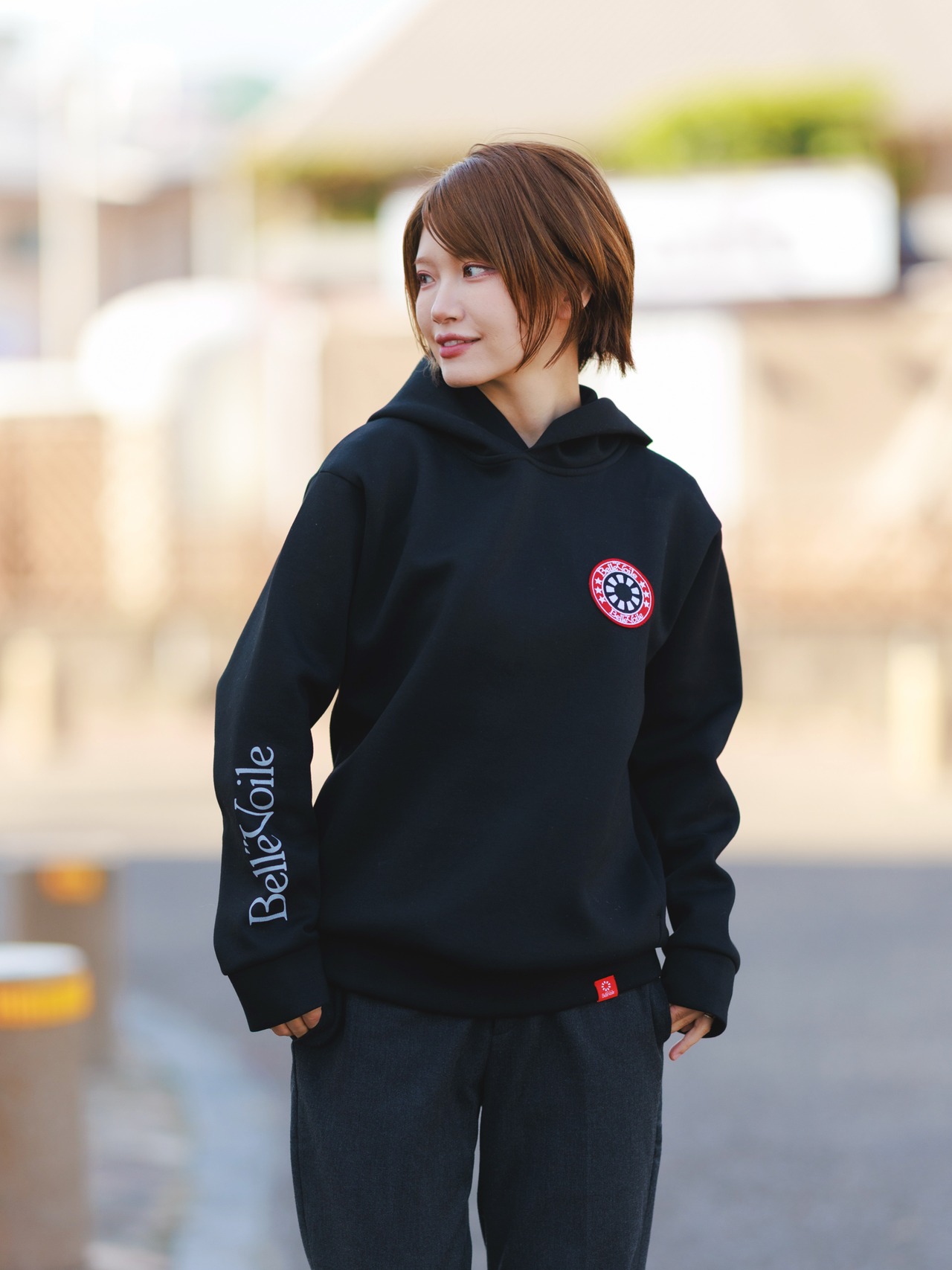 胸元にはブランドの象徴である Belle”Voileロゴパッチを配置し、シンプルなデザインの中でアイコニックに映え、個性と存在感をプラスしてくれます。