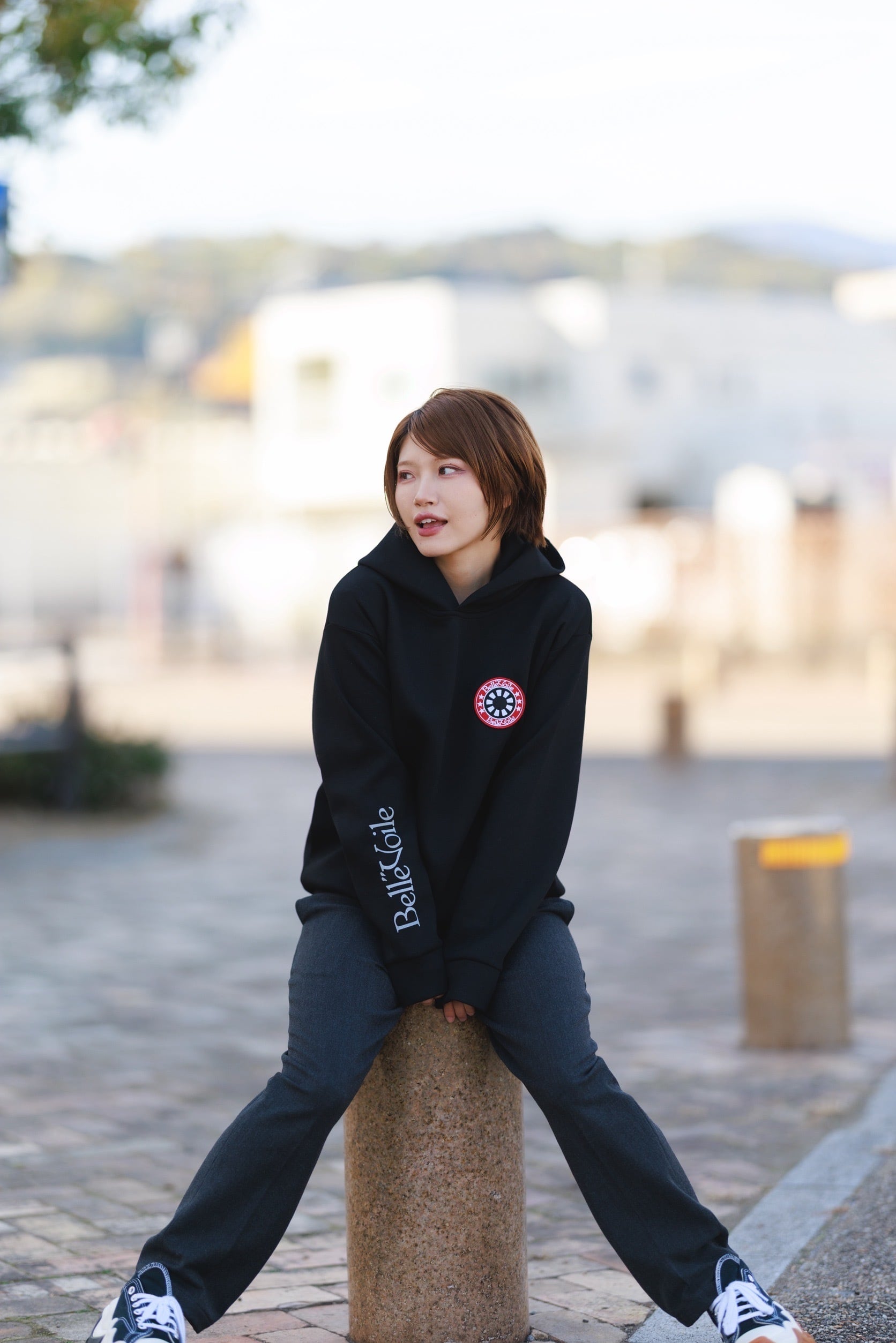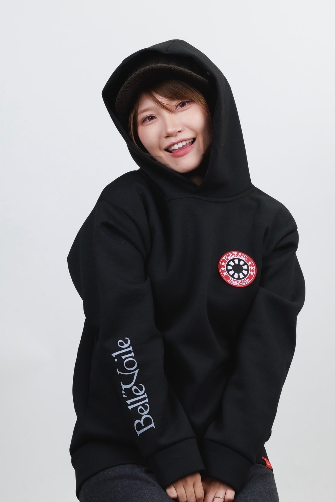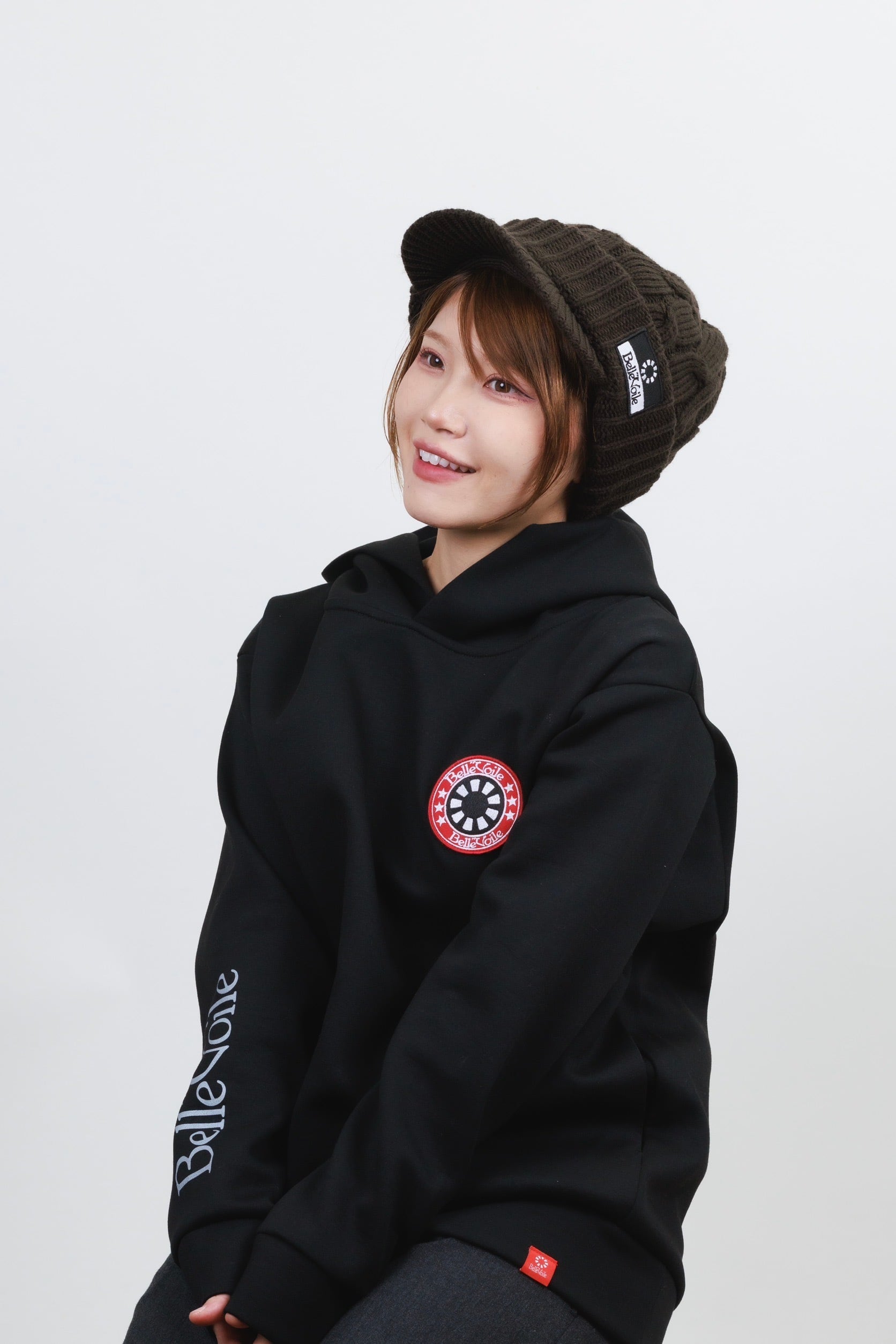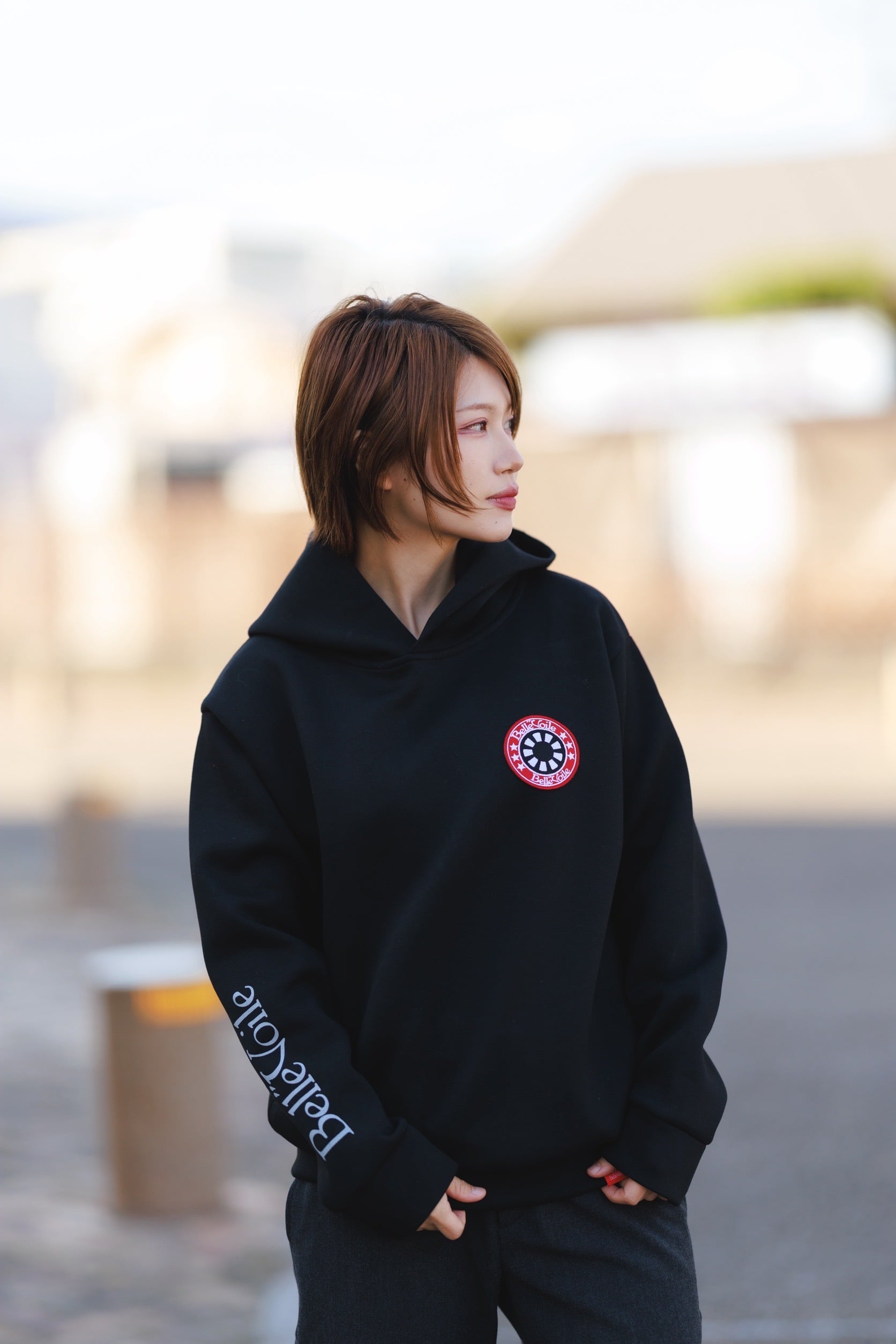 胸元にはブランドの象徴である Belle”Voileロゴパッチを配置し、シンプルなデザインの中でアイコニックに映え、個性と存在感をプラスしてくれます。