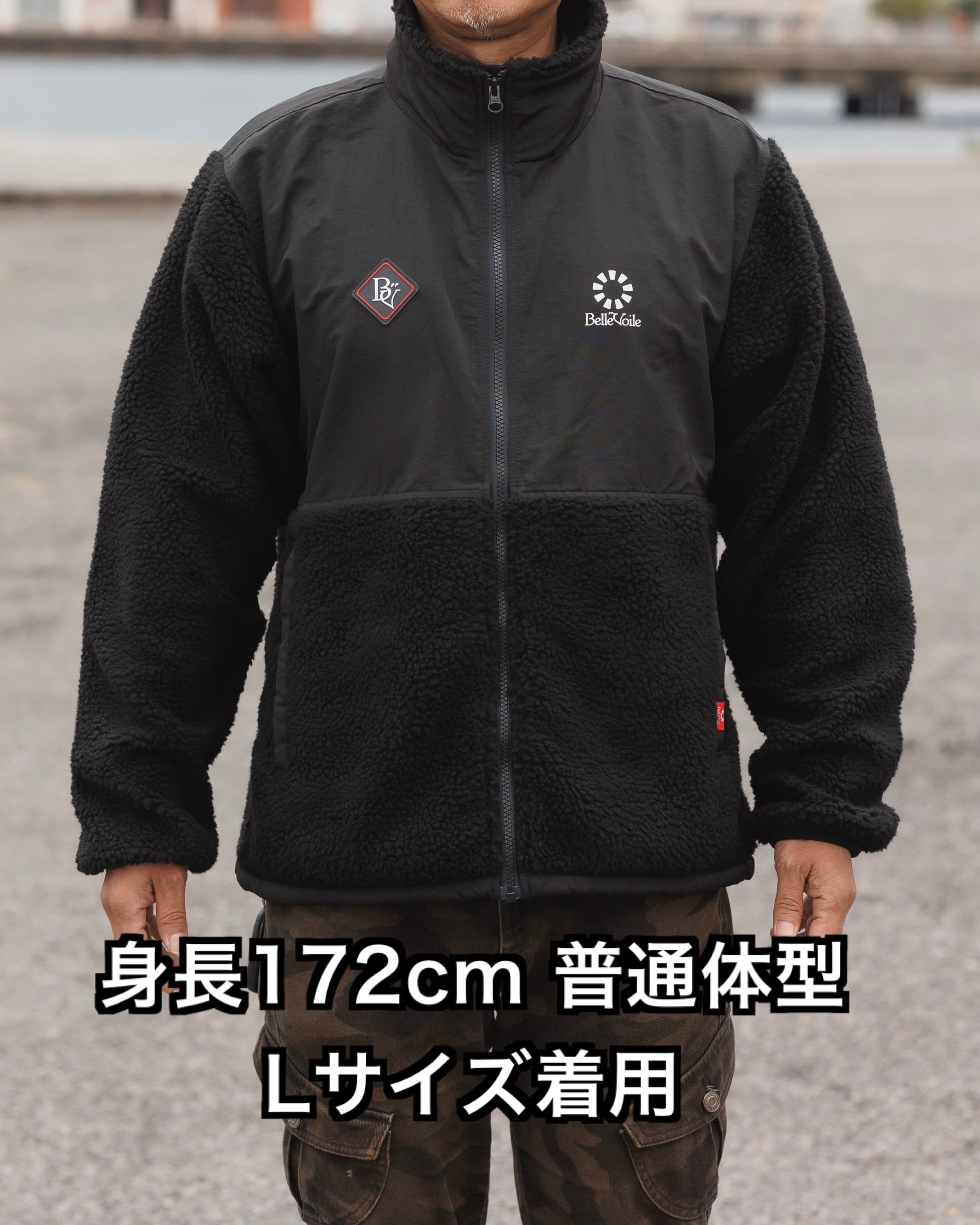 表地はボリューム感あるシープボアとマットな質感のナイロン グログランの切り替え、裏地にはパンチングメッシュを使用した、本格仕様のフリース ジャケット。